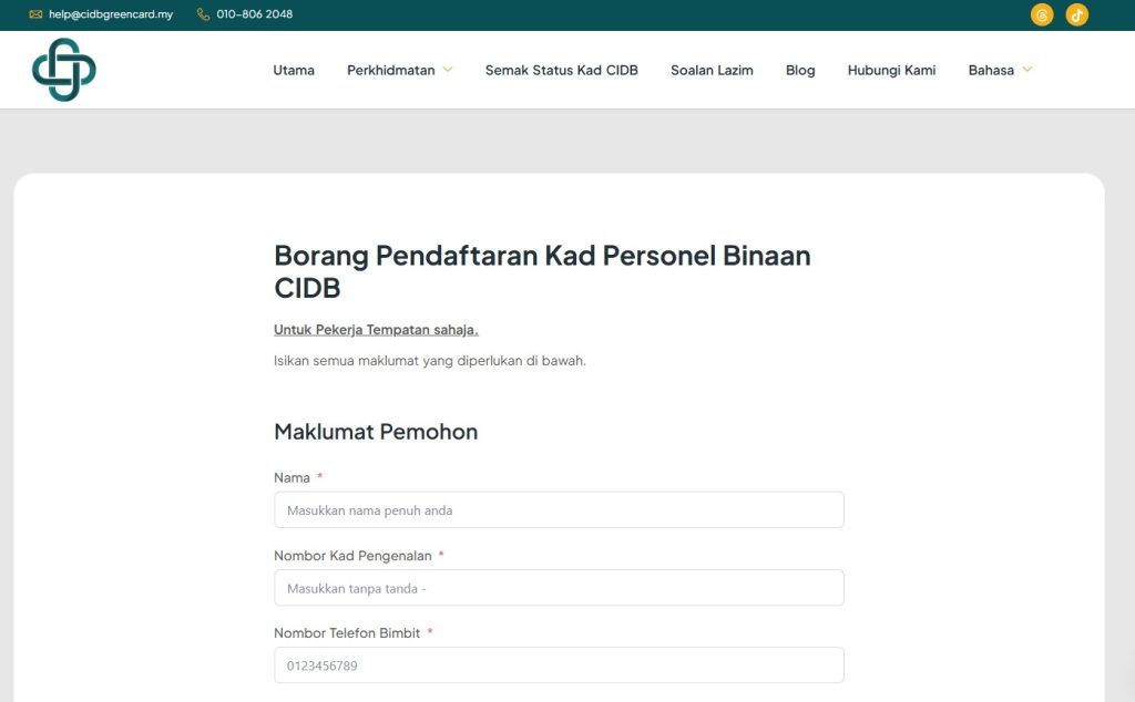 Berikut adalah langkah mudah untuk mendaftar kad CIDB di website kami: